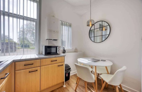Stylish home in Balloch, steps from Loch Lomond. Two bedrooms, modern bathroom, extra WC, hotel-quality linens and towels. Open-plan kitchen and dining area, plus a private patio perfect for sunny meals or evening drinks. With a private entrance and free on-site parking, this home offers both comfort and convenience for a relaxing stay.