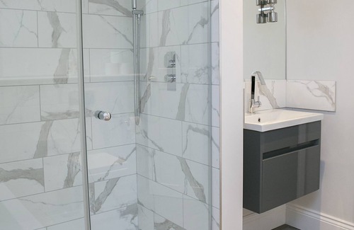 It has a spacious living room, with sofa bed and Smart TV, brand new kitchen / diner with round marble table which seats 4 people. Integrated appliances including washer dryer. Good sized bedroom with king bed and built-in wardrobe, Smart TV in bedroom. Stylish bathroom in grey marble effect tile with underfloor heating, bath with separate shower. Free WIFI. Furnished and styled to an excellent standard, offering first class contemporary accommodation in a convenient location.